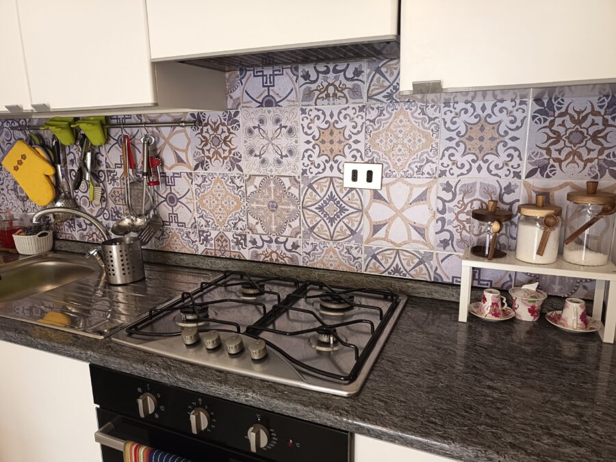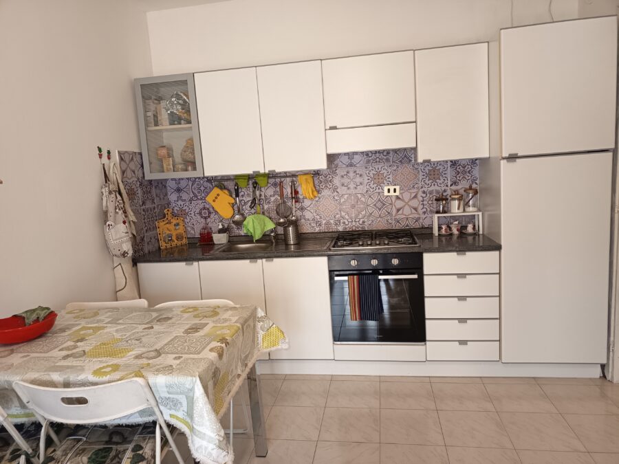 L'appartamento, con PORTA BLINDATA, si compone di ingresso su disimpegno, soggiorno con angolo cottura accessoriato, DIVANO/LETTO e TV, bagno finestrato con vasca, camera da letto matrimoniale e grande TERRAZZO VIVIBILE, con VISTA APERTA, dotato di TENDE DA SOLE, LAVATRICE e tavolo da esterni: ideale per godersi pranzi o cene d'estate.