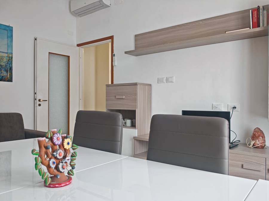 L’appartamento, semi RISTRUTTURATO, si compone di CUCINA abitabile accessoriata e dotata di FORNO ELETTRICO e A MICROONDE, BOLLITORE e PIANO A INDUZIONE, soggiorno con TV e DIVANO/LETTO, bagno finestrato con box DOCCIA e LAVATRICE, camera da letto matrimoniale con LETTO AGGIUNTIVO ed, infine, BALCONE con VISTA MARE laterale, VISTA COLLINA ed esposizione pomeridiana, accessibile dalle zone giorno. SPLIT per l’aria condizionata presenti nei 2 ambienti principali.